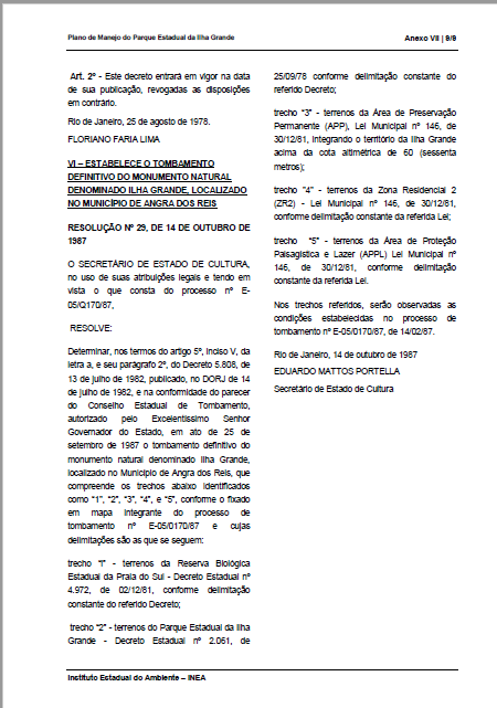 Observações: O arquivo referente à Resolução nº 29, de 14 de outubro de 1987 foi retirado do Plano de Manejo do Parque Estadual da Ilha Grande (Anexos), que pode ser encontrado em nosso Banco de Dados, na parte de Projetos & Planos.